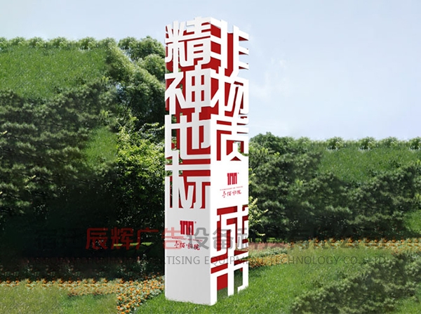 精神堡壘具備一定的體量和高度,能夠獨立表達企業形象的大型單體標識。精神堡壘特指為商業體、主題園區、交通站點等公共場所,樹立醒目且符合場地氣質的藝術構筑物。精神堡壘的擺放的位置也尤其重要,人都有視覺盲點,精神堡壘給人一種清新和諧的感覺。